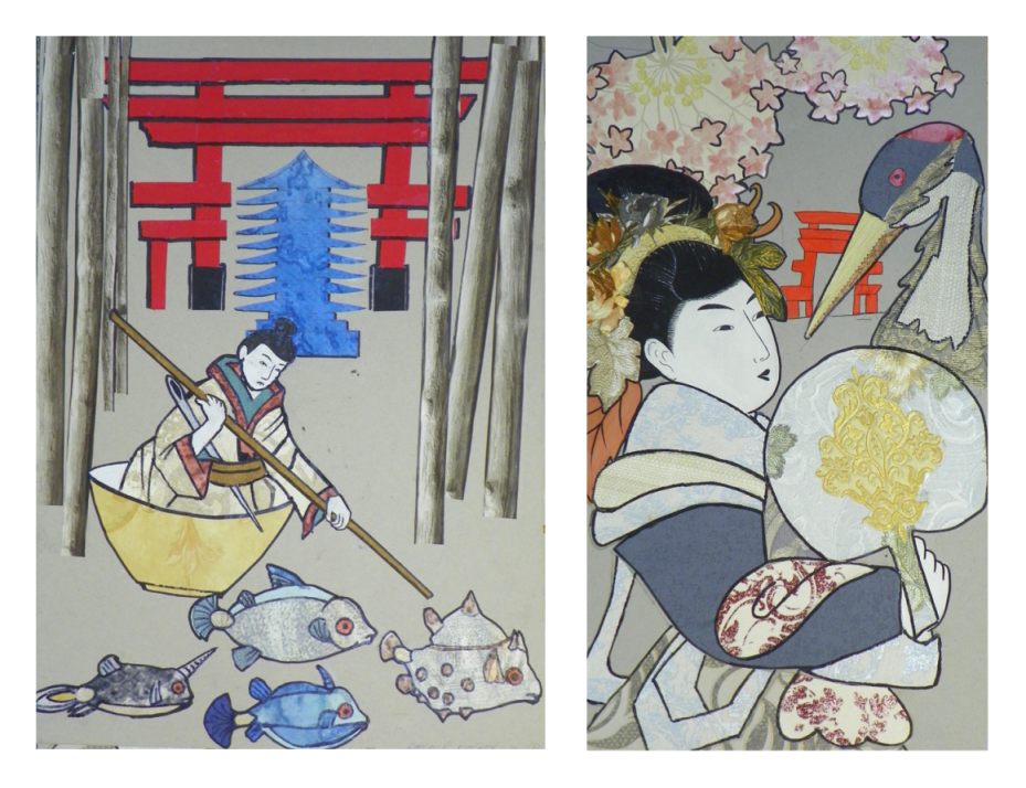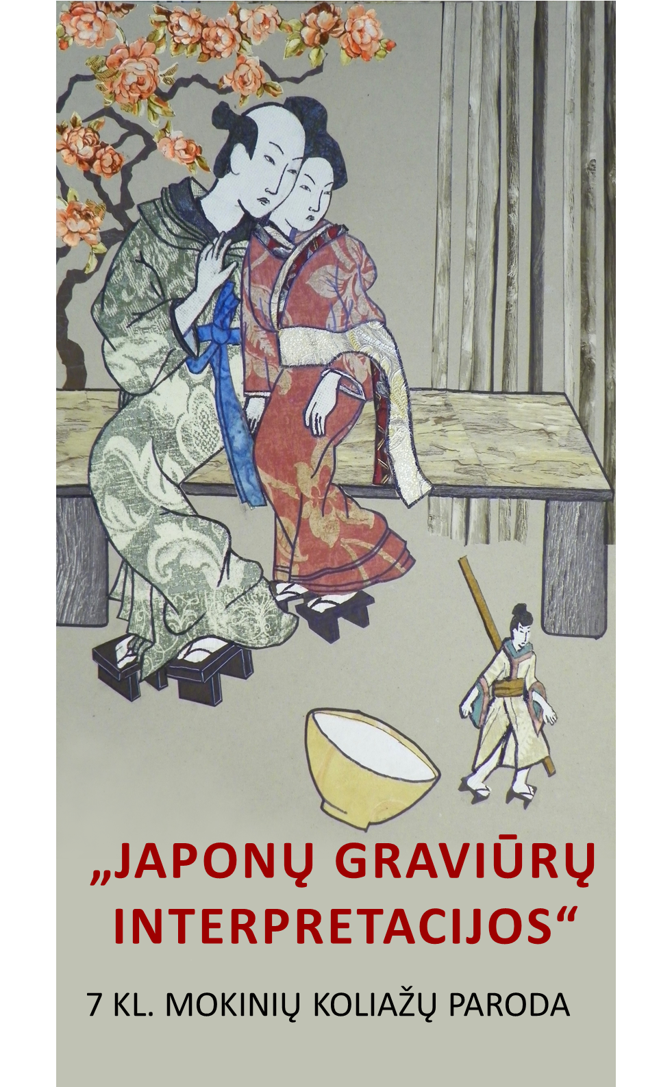 „Laiptų” galerijoje – 7 kl. mokinių koliažų paroda „Japonų graviūrų interpretacijos“.